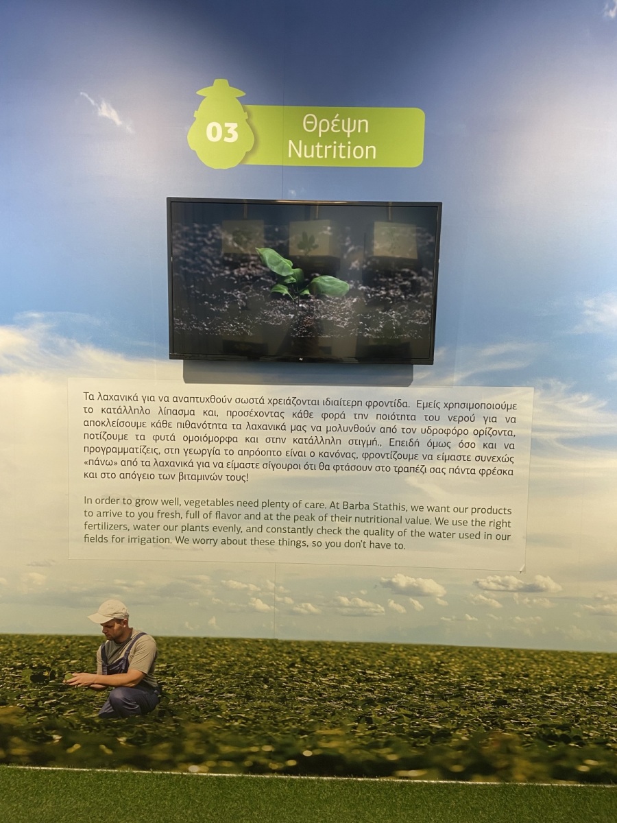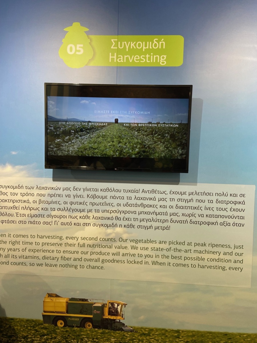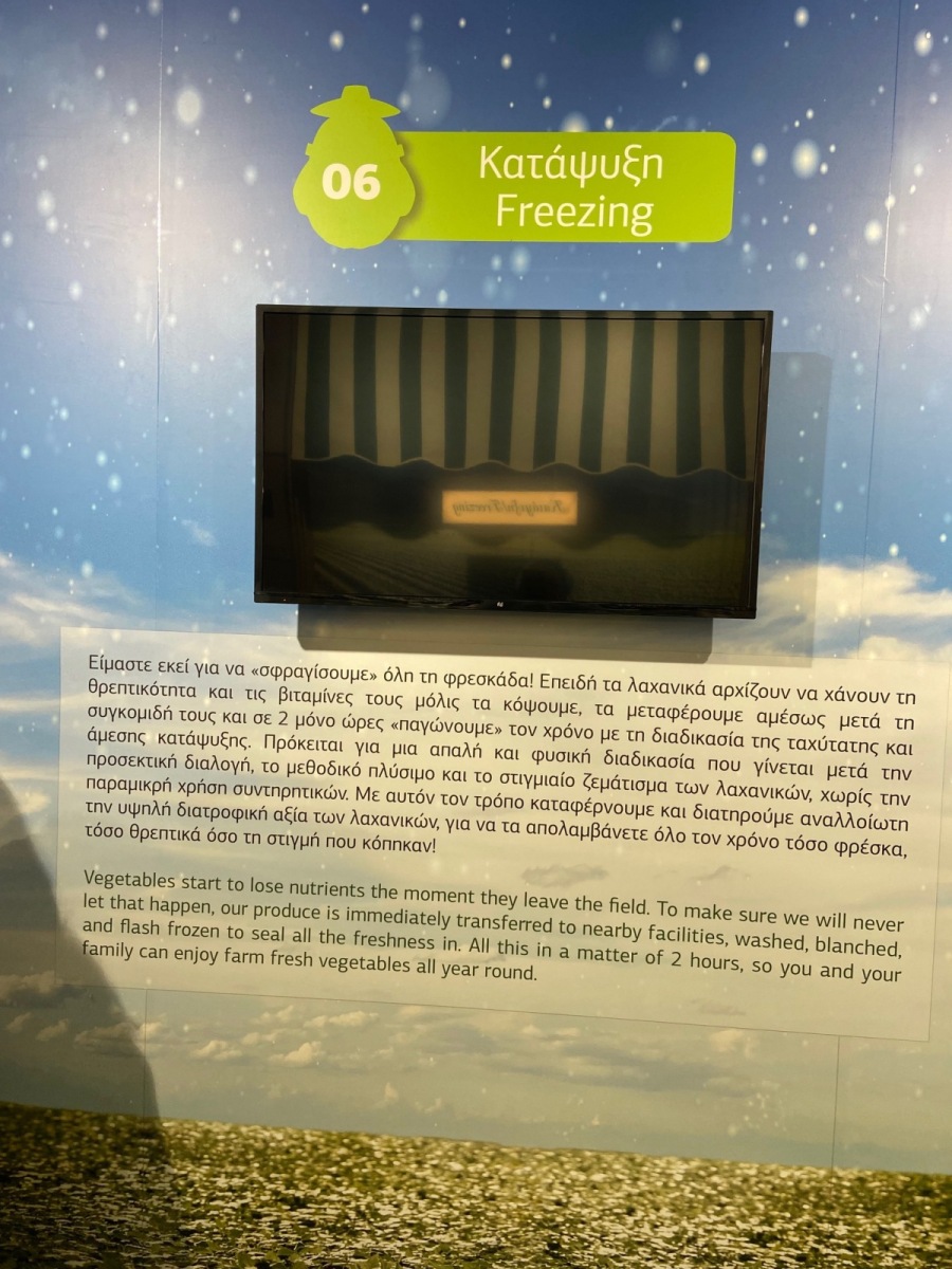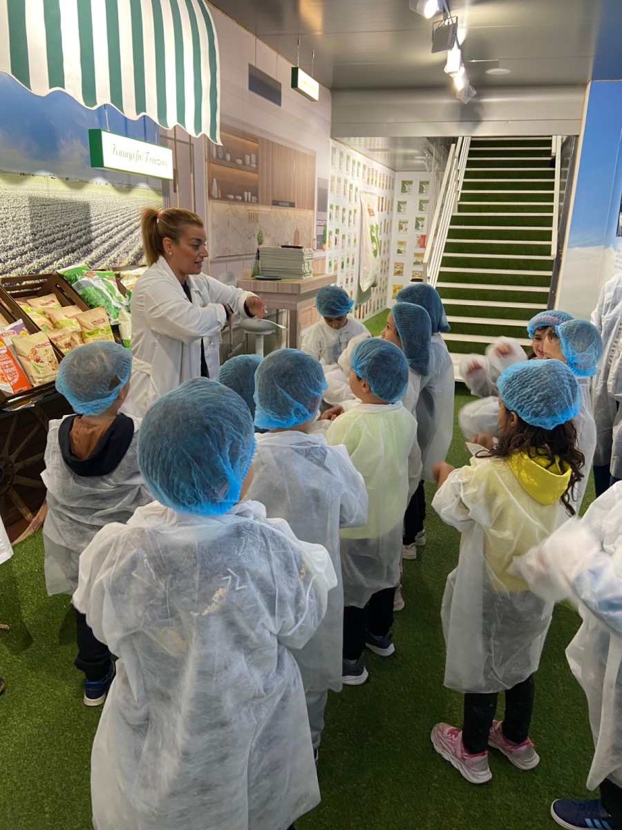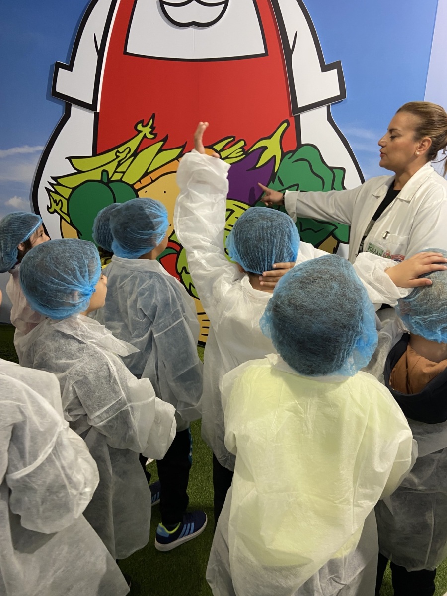 Μπήκαμε στο χώρο της ξενάγησης, όπου ανακαλύψαμε το μαγικό ταξίδι της τροφής, που ξεκινά από την ελληνική γη, είδαμε πώς γίνεται η σπορά, η θρέψη, η προστασία από τους κινδύνους, η συγκομιδή, η κατάψυξη των λαχανικών και πώς αυτά καταλήγουν στο σπίτι μας. Είδαμε το δέντρο του ΜΠΑΡΜΠΑ-ΣΤΑΘΗ, φτιάξαμε τον κ. Μπρόκολο, παίξαμε παιχνίδια και γευτήκαμε τα λαχανικά του. Όλα ήταν πεντανόστιμα! Ήταν μια εκδρομή που θα μείνει σε όλους μας αξέχαστη!