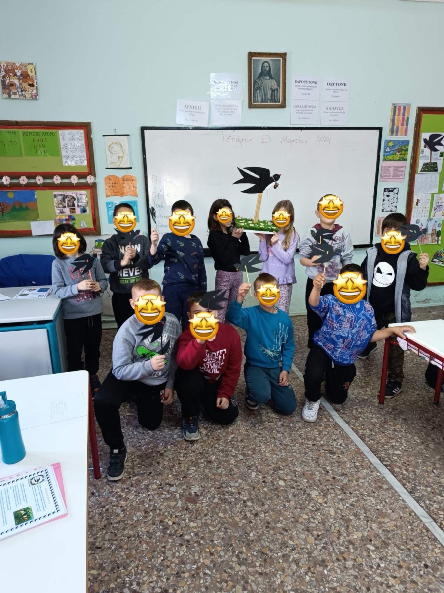 Οι μαθητές της Β΄ Δημοτικού, με τον εκπαιδευτικό του μαθήματος της Μελέτης Περιβάλλοντος κ.Ντάκα Βαλσαμή, γνώρισαν το έθιμο της χελιδόνας.